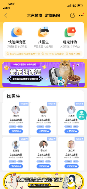 目前,受上海疫情影響,居家隔離的寵物主正面臨著諸多寵物喂養(yǎng)和健康防疫難題。京東健康寵物醫(yī)院建議,如遇到寵糧不足如何科學(xué)喂養(yǎng)、寵物突發(fā)健康狀況如何快速救急、寵物居家隔離慢病如何管理、愛寵居家情緒如何疏導(dǎo)等寵物問題,都可以通過在京東APP內(nèi)搜索“寵物醫(yī)院”,進(jìn)入寵物醫(yī)院專區(qū),獲得超5000名專業(yè)寵物醫(yī)生的在線免費(fèi)問診服務(wù)。