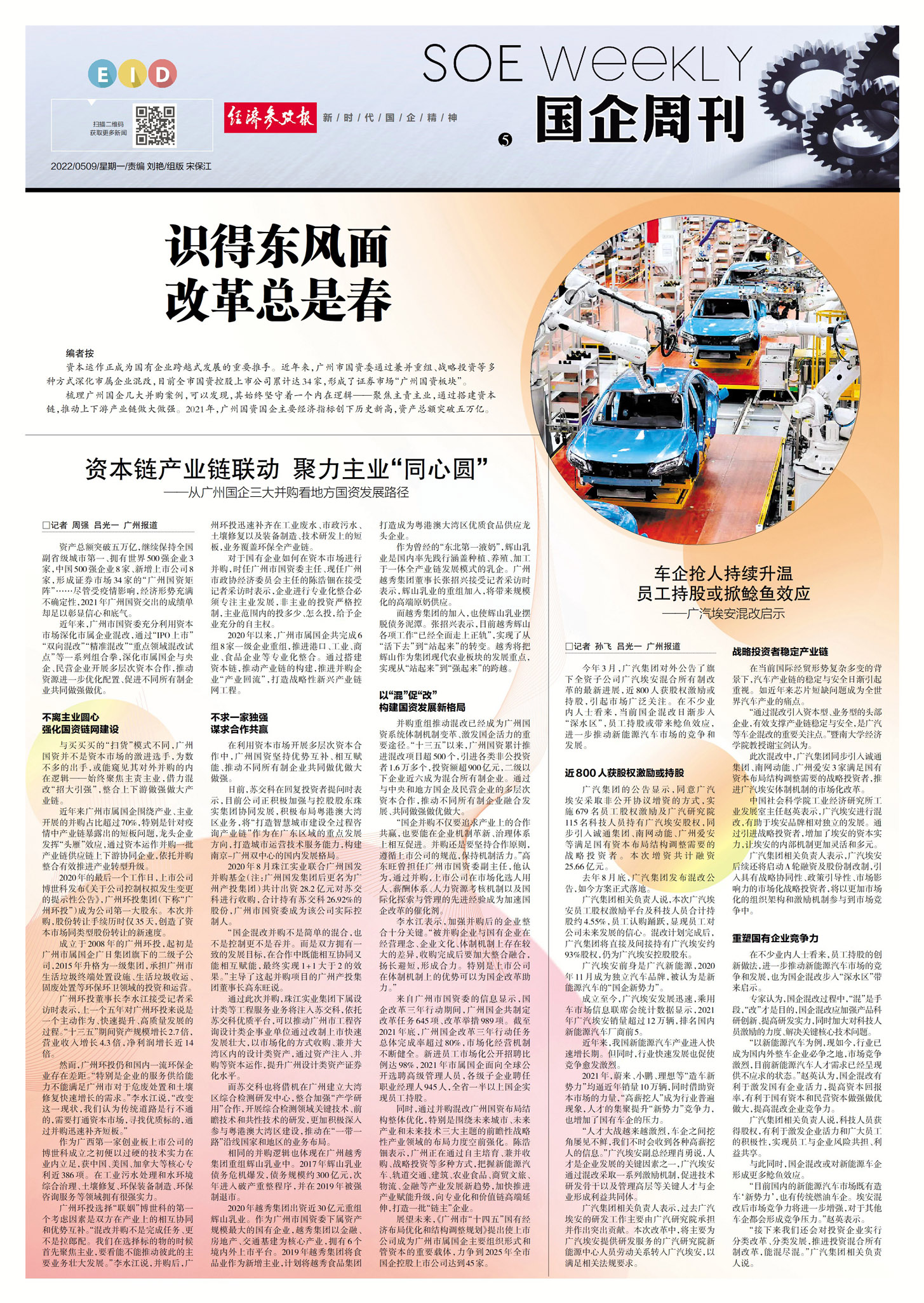 2020年以來(lái),廣州市屬國(guó)企共完成6組8家一級(jí)企業(yè)重組,推進(jìn)港口、工業(yè)、商業(yè)、食品企業(yè)等專業(yè)化整合。通過(guò)搭建資本鏈,推動(dòng)產(chǎn)業(yè)鏈的構(gòu)建,推進(jìn)并購(gòu)企業(yè)“產(chǎn)業(yè)回流”,打造戰(zhàn)略性新興產(chǎn)業(yè)鏈網(wǎng)工程。