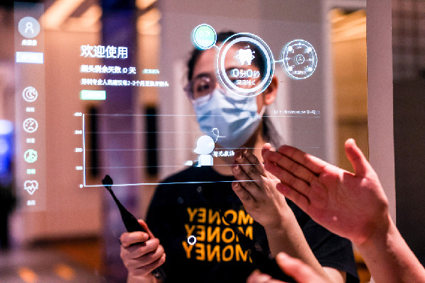 5月26日,工作人員在國家大數(shù)據(jù)(貴州)綜合試驗(yàn)區(qū)展示中心內(nèi)使用智能家居的智能鏡子。貴州是全國首個(gè)大數(shù)據(jù)綜合試驗(yàn)區(qū),大數(shù)據(jù)發(fā)展推動(dòng)政用、商用、民用多個(gè)領(lǐng)域。