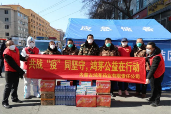 疫情暴發(fā)后,鴻茅藥業(yè)第一時(shí)間向內(nèi)蒙古自治區(qū)紅十字會(huì)捐款110萬元,其中100萬元專項(xiàng)用于對內(nèi)蒙古自治區(qū)抗擊疫情醫(yī)護(hù)人員的援助,10萬元專項(xiàng)用于在疫情防控一線崗位上因公殉職的突泉縣民警何建華同志的家屬慰問援助金。在疫情期間,鴻茅藥業(yè)多次向內(nèi)蒙古自治區(qū)烏蘭察布市涼城縣紅十字會(huì)捐款捐贈(zèng)支援抗疫,同時(shí)成立公益專項(xiàng)小組,向呼和浩特市社區(qū)、幼兒園、環(huán)衛(wèi)團(tuán)隊(duì)等捐贈(zèng)抗疫物資,總金額達(dá)數(shù)百萬元。