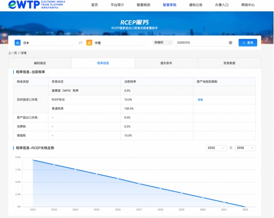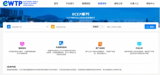 據(jù)了解到,屆時,企業(yè)只需要登陸eWTP官網(wǎng),通過“智慧享稅”欄目即可查詢輸入原產(chǎn)地、出口國和出口商品的HS編碼,就會顯示RCEP和其他貿(mào)易協(xié)定對于該商品的稅率規(guī)定,系統(tǒng)將會推薦最優(yōu)惠稅率;企業(yè)還可查詢相關原產(chǎn)地規(guī)則,便于企業(yè)了解協(xié)定享惠要求。