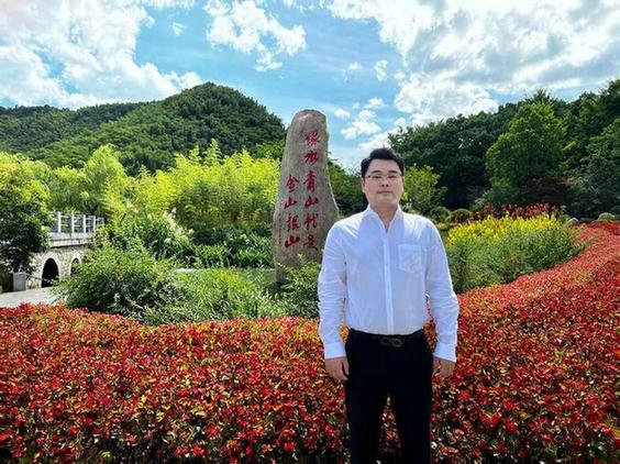 蟹狀元董事長(zhǎng)高超與“綠水青山就是金山銀山”石碑合影
