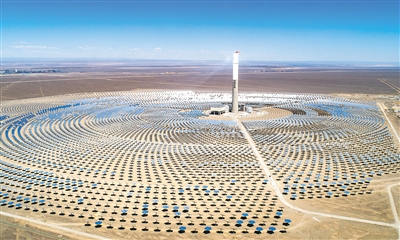中國能建投資建設(shè)的哈密50兆瓦熔鹽塔式光熱發(fā)電項目。資料照片
