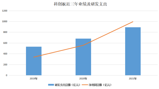 作為實體經(jīng)濟高質(zhì)量發(fā)展的生力軍,科創(chuàng)板公司整體業(yè)績始終保持較快增長。Wind數(shù)據(jù)顯示,2019年至2021年,科創(chuàng)板上市公司總體實現(xiàn)營業(yè)收入分別為5229.28億元、6311.95億元、8632.61億元,凈利潤分別為336.73億元、556.33億元、993.07億元,整體盈利質(zhì)量逐年攀升。