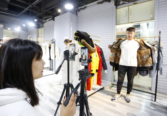 棗強(qiáng)縣皮草商戶正在直播賣貨。資料照片