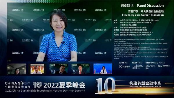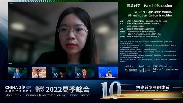 中國(guó)責(zé)任投資論壇秘書(shū)長(zhǎng)、商道融綠執(zhí)行副總裁關(guān)睿主持討論了“百花齊放:助力轉(zhuǎn)型的金融創(chuàng)新”主題圓桌對(duì)話(huà)環(huán)節(jié),來(lái)自公募基金、理財(cái)公司、主權(quán)基金、交易商協(xié)會(huì),以及產(chǎn)業(yè)基金的各位代表就轉(zhuǎn)型金融的內(nèi)涵及發(fā)展轉(zhuǎn)型金融的機(jī)遇與挑戰(zhàn)進(jìn)行了對(duì)話(huà)。