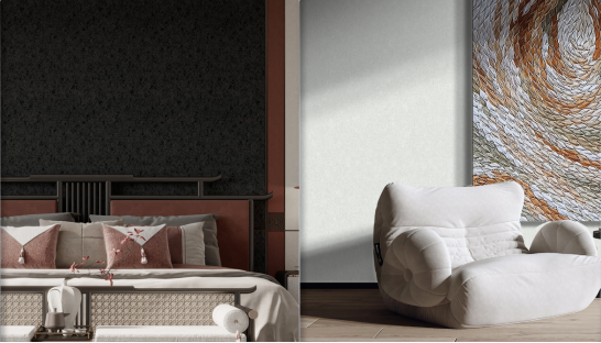 墻布的耐磨性以紗線密度為直觀展現,高精密就是指高支數高密度的面料,紗織數越高表示紗線越細,密度越高表示紗線越多。領繡無縫墻布以提花天然的紋理與色織工藝的結合來突出藝術質感,結合高端技術工藝,可用于各種風格裝飾空間。不僅顏值高,質感也非常好——高精密墻布在制作過程中使用的經線數量較多織出來的墻布密度較大,繡面很平整,手感也非常舒適。