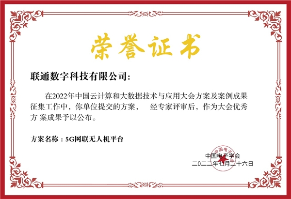 7月26日上午,2022中國(guó)云計(jì)算與大數(shù)據(jù)技術(shù)與應(yīng)用大會(huì)在北京隆重召開(kāi)。本次大會(huì)由中國(guó)電子學(xué)會(huì)主辦,旨在分析國(guó)內(nèi)外云計(jì)算、大數(shù)據(jù)技術(shù)發(fā)展特點(diǎn)和趨勢(shì),加快經(jīng)濟(jì)社會(huì)數(shù)字化發(fā)展,深入推進(jìn)實(shí)施“上云用數(shù)賦智”行動(dòng),賦能傳統(tǒng)產(chǎn)業(yè)轉(zhuǎn)型升級(jí)。會(huì)上,聯(lián)通數(shù)字科技有限公司5G網(wǎng)聯(lián)無(wú)人機(jī)平臺(tái)、場(chǎng)景云系列產(chǎn)品斬獲兩項(xiàng)優(yōu)秀案例成果獎(jiǎng)。