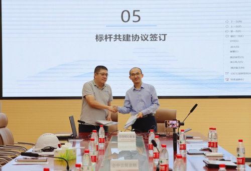最后,新國展二期項(xiàng)目經(jīng)理焦勇與廣聯(lián)達(dá)副總裁劉曉棟代表雙方公司正式簽署了共育·標(biāo)桿共建協(xié)議。