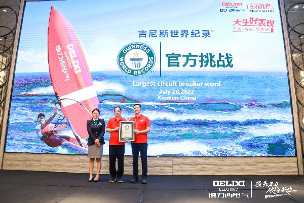 不斷的「破」與「立」,跳出當(dāng)下,方能率先「破局」而出。在本次的會(huì)議中,德力西電氣也創(chuàng)新性地?cái)y手來自全國的核心合作伙伴,在重慶、長沙、廈門三地成功挑戰(zhàn)“最大的斷路器拼成的詞語”紀(jì)錄,并獲得吉尼斯世界紀(jì)錄?官方認(rèn)證。