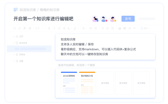 如流“智能工作平臺(tái)2.0”,聚焦“AI+知識(shí)管理”,通過智能知識(shí)管理、智能會(huì)議、智能工作臺(tái)三大產(chǎn)品矩陣,圍繞創(chuàng)新、協(xié)同、自驅(qū)三大關(guān)鍵能力,加速實(shí)現(xiàn)組織智能化。智能知識(shí)管理圍繞智能知識(shí)庫和搜索推薦雙引擎,幫助企業(yè)實(shí)現(xiàn)從知識(shí)創(chuàng)造、知識(shí)沉淀、知識(shí)流動(dòng)、到知識(shí)應(yīng)用的全場景、全流程智能化升級(jí),提升企業(yè)創(chuàng)新能力。智能會(huì)議通過軟硬一體智能會(huì)議室系統(tǒng),把人、設(shè)備、空間三者智能化連接起來,降低組會(huì)成本,讓組織協(xié)同更高效。智能工作臺(tái)則是致力于打破系統(tǒng)壁壘,重塑工作任務(wù)單元,為不同角色的員工打造專屬工作臺(tái),將工作任務(wù)規(guī)劃和管理的主動(dòng)權(quán)交給員工,從根本上激發(fā)員工活力,讓組織更具自驅(qū)發(fā)展進(jìn)化的能力。