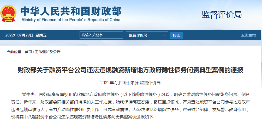 融資平臺(tái)公司違法違規(guī)融資財(cái)政部公開(kāi)通報(bào)問(wèn)責(zé)典型案例