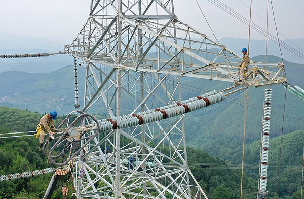 閩粵電力聯(lián)網(wǎng)線路工程日前全線貫通,實(shí)現(xiàn)福建電網(wǎng)與廣東電網(wǎng)物理“牽手”。圖為國(guó)網(wǎng)福建省送變電工程有限公司施工人員在閩粵電力聯(lián)網(wǎng)線路工程現(xiàn)場(chǎng)作業(yè)。