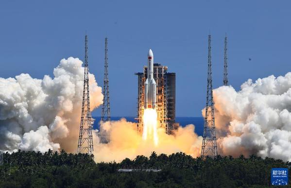 2022年7月24日,搭載問天實(shí)驗(yàn)艙的長征五號B遙三運(yùn)載火箭,在我國文昌航天發(fā)射場點(diǎn)火發(fā)射。新華社記者 李剛 攝