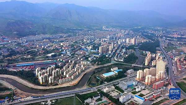 青海省西寧市湟源縣城全景。(湟源縣委宣傳部供圖,無人機照片)
