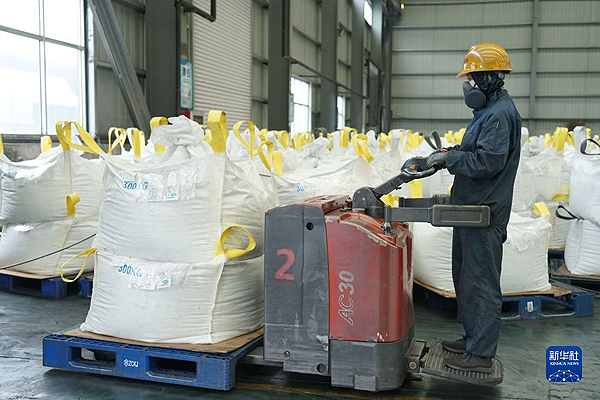 8月26日,在青海凱金新能源材料有限公司,工作人員轉運產品。新華社記者解統(tǒng)強 攝