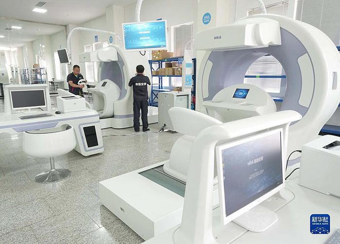 工人在河北省秦皇島經(jīng)濟(jì)技術(shù)開(kāi)發(fā)區(qū)一家醫(yī)療設(shè)備企業(yè)的生產(chǎn)車間工作(2022年8月3日攝)。新華社記者 楊世堯 攝