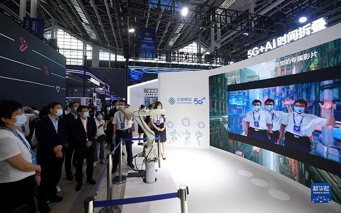 參觀者在河北省石家莊市舉辦的2021中國(guó)國(guó)際數(shù)字經(jīng)濟(jì)博覽會(huì)上參觀(2021年9月6日攝)。新華社記者 王曉 攝