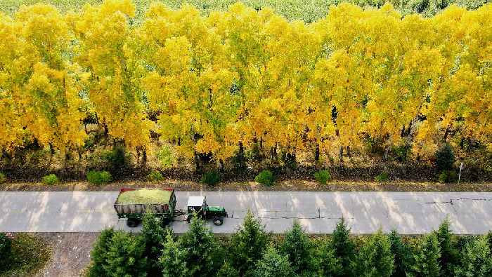 北大荒集團(tuán)北安分公司青貯玉米收獲后被裝車運走。