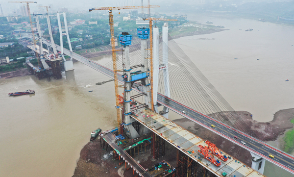 重慶軌道交通18號線李家沱長江復線橋南岸主塔封頂