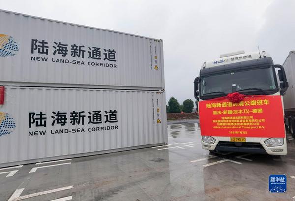 這是陸海新通道跨境公路班車(2022年7月2日攝)。新華社發(fā)(張云龍 攝)