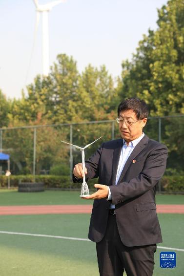 武鋼在位于北京經(jīng)濟技術(shù)開發(fā)區(qū)的金風科技智慧園區(qū)內(nèi)展示風機模型(2022年9月20日攝)。新華社發(fā)