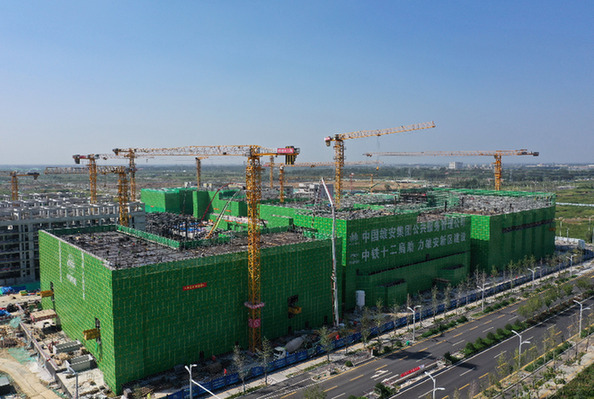 雄安創(chuàng)新研究院科技園項目建設(shè)現(xiàn)場(9月1日攝,無人機(jī)照片)。新華社記者 朱旭東 攝