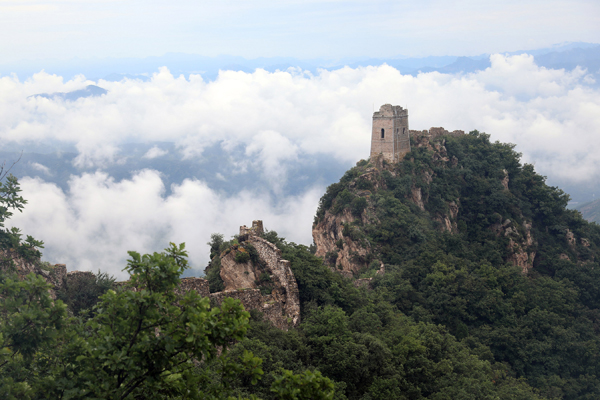 8月9日拍攝的金山嶺長城云海景觀。