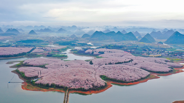 每年春季,貴州省貴安新區(qū)櫻花園內(nèi)櫻花競相盛開,吸引不少游客前來觀賞。