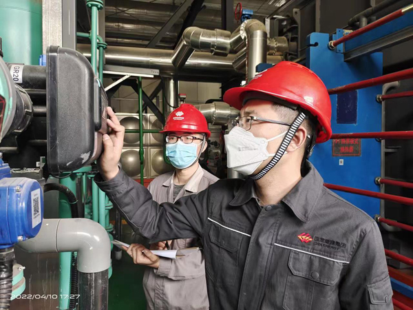 國家能源集團寧夏電力供熱有限公司運維人員正在巡檢供熱設備,排查安全隱患。