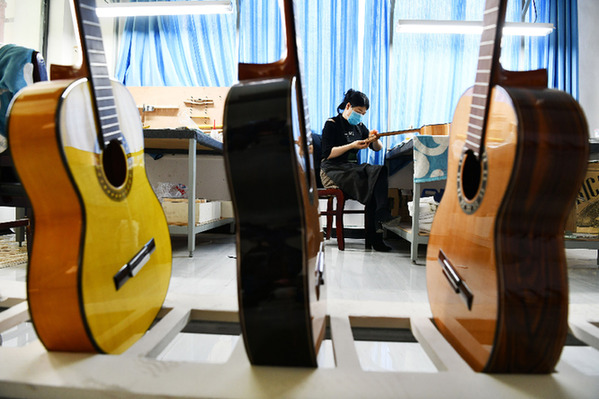 “最具吸引力的是當(dāng)?shù)爻渥愕膭趧?dòng)力資源,以及完整的產(chǎn)業(yè)鏈?!辟F州正安娜塔莎樂器制造有限公司生產(chǎn)負(fù)責(zé)人李啟旺說。2018年,由于看好正安縣的吉他產(chǎn)業(yè)發(fā)展,公司從廣州搬到了正安。