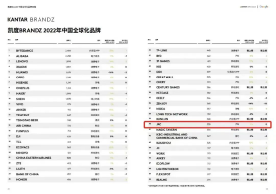 作為最早布局海外市場的中國汽車品牌之一,江汽集團堅定“走出去”的步伐,積極響應(yīng)“一帶一路”倡議,加大海外市場開拓力度,進一步推動公司國際業(yè)務(wù)持續(xù)向上向好,JAC品牌的世界影響力日益增強,底色更亮、成色更足。江汽集團位列Brand Z中國全球化品牌第40位,中國汽車品牌第5位。