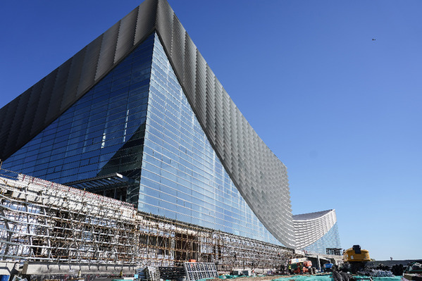 這是北京城市副中心圖書館項(xiàng)目施工現(xiàn)場(2022年11月4日攝)。