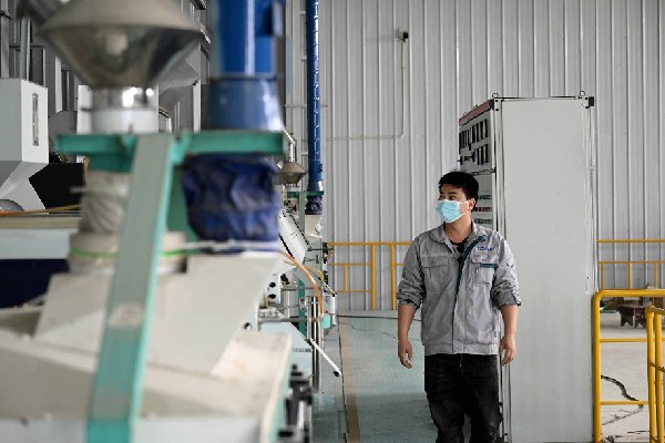 11月3日,工作人員在安徽省蒸谷米食品科技有限公司生產車間內工作。