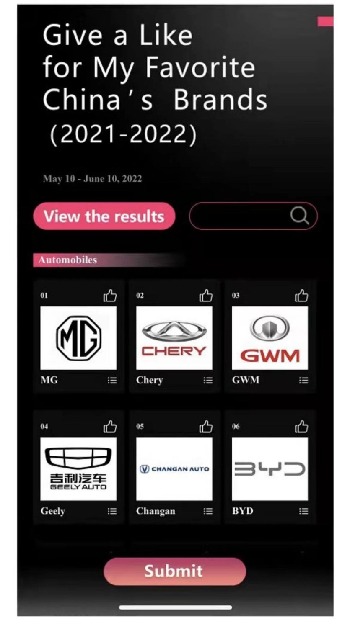 圖為“2022外國(guó)人喜愛(ài)的中國(guó)品牌”網(wǎng)絡(luò)投票頁(yè)面