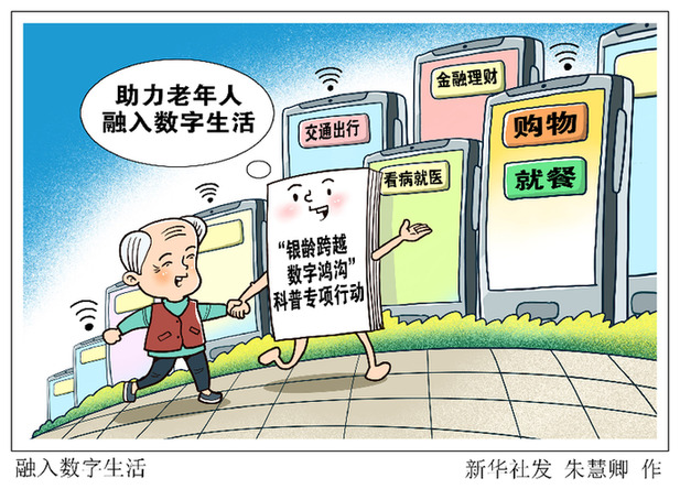 為積極應對人口老齡化,中國科協(xié)、中國銀行、中國聯通日前聯合印發(fā)方案,共同開展“銀齡跨越數字鴻溝”科普專項行動,滿足老年人對信息素養(yǎng)、數字技能和金融知識等方面的需求,切實解決他們在高頻生活場景中智能應用的現實困難,助力老年人走進數字時代、享受智慧生活。新華社發(fā) 朱慧卿 作?