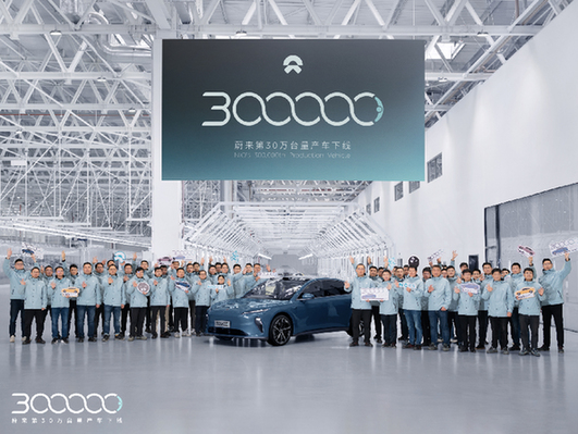 注:江淮蔚來(lái)先進(jìn)制造基地第30萬(wàn)臺(tái)汽車(chē)下線