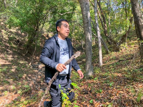 2022年9月19日,梁鋮龍在山里查看養(yǎng)雞圍場情況。(受訪者供圖)