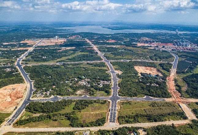 2022年12月26日拍攝的建設(shè)中的文昌國際航天城起步區(qū)“三橫五縱”路網(wǎng)工程項目(無人機照片)。新華社記者 蒲曉旭 攝