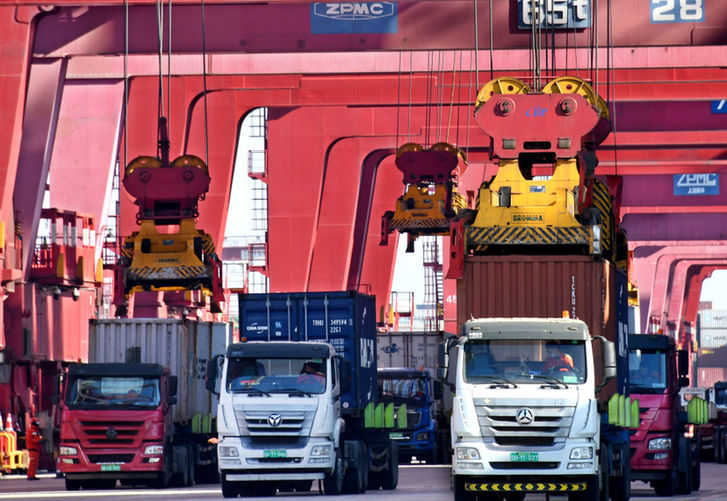 青島港前灣集裝箱碼頭的繁忙景象。記者 李紫恒 攝