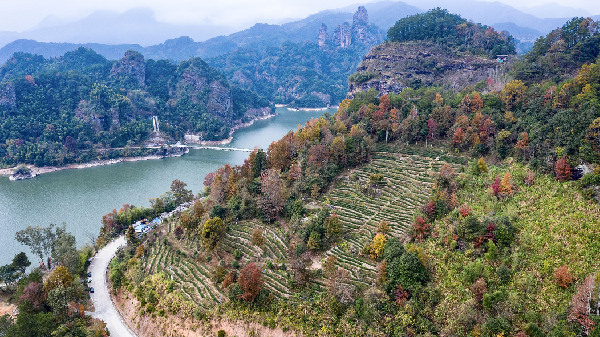 福建省三明市泰寧縣梅口鄉(xiāng)的茶園及群山。