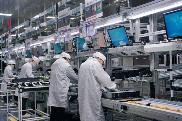 在位于許昌的黃河科技集團信息產業(yè)發(fā)展有限公司,生產車間內,33歲的女工溫艷麗正在對該公司生產的服務器電路板進行內存條組裝。
