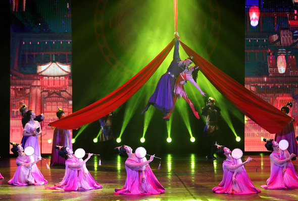 ??? 西安戰(zhàn)士戰(zhàn)旗雜技團創(chuàng)作的雜技劇《星光燦爛之如夢長安》。 記者 梁愛平 攝