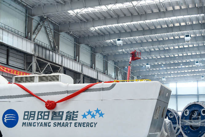 “去年3月開工建設,誰能想到不到一年的時間,就能建成這么大規(guī)模的項目?!痹擁椖控撠熑藙|介紹,從一片荒山到大型廠房排布,這里很快將建成大型陸上風電整機、齒輪箱、發(fā)電機、碳?;旌铣L葉片等核心部件的智能制造基地,具備年產(chǎn)1000臺套以上陸上超大型風電整機及核心部件的生產(chǎn)能力。