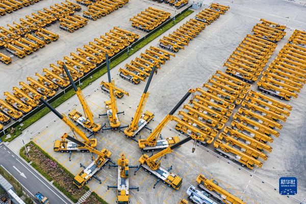 這是2022年5月9日拍攝的江蘇徐工集團重型機械有限公司的產(chǎn)品調(diào)試場(無人機照片)。新華社發(fā)