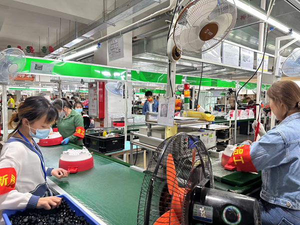 農(nóng)行廣東順德分行為小熊電器提供全方位金融服務(wù),助力其打造年輕人喜愛的小家電品牌。圖為小熊電器的生產(chǎn)車間內(nèi),工人們正忙得熱火朝天。