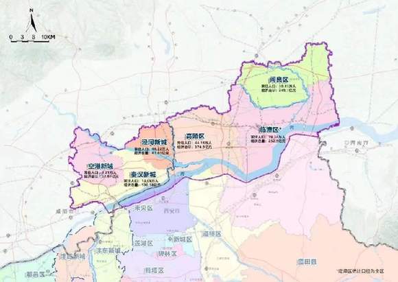 “北跨”主要是向北跨渭河發(fā)展拉大城市骨架,優(yōu)化西安城市空間布局。從區(qū)域來看,“北跨”戰(zhàn)略主要涉及高陵區(qū)、閻良區(qū)、臨潼區(qū)、西咸新區(qū)直管區(qū)(秦漢新城、涇河新城、空港新城)等渭河北岸各板塊,以及渭河南岸未央?yún)^(qū)、經(jīng)開區(qū)、灞橋區(qū)、國(guó)際港務(wù)區(qū)的部分區(qū)域。