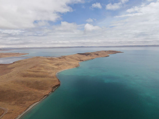 這是2021年5月25日在青海省果洛藏族自治州拍攝的三江源國(guó)家公園黃河源園區(qū)內(nèi)的鄂陵湖(無人機(jī)照片)。新華社記者 李占軼 攝