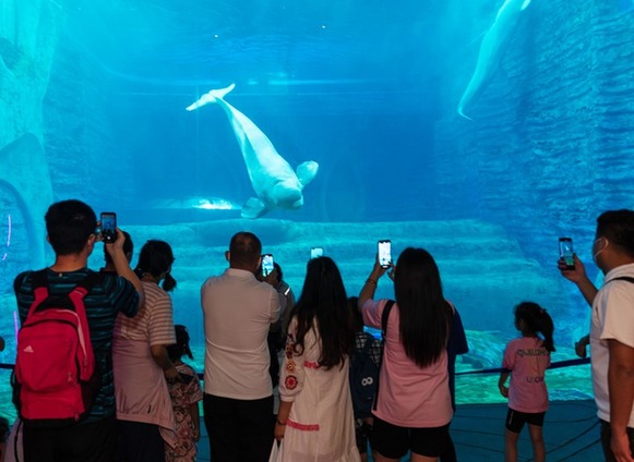 游客在海南三亞亞特蘭蒂斯酒店水族館參觀游玩。記者 蒲曉旭 攝