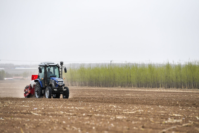 在吉林省四平市梨樹縣四棵樹鄉(xiāng),農(nóng)民駕駛農(nóng)機(jī)進(jìn)行春耕作業(yè)(4月20日攝)。新華社記者 張楠 攝